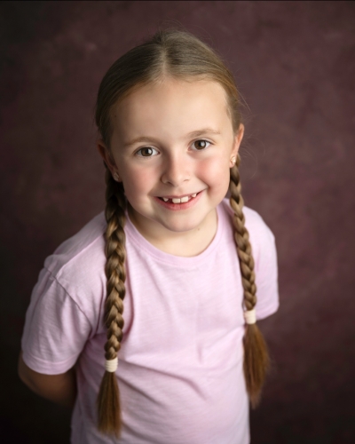 Female 4'3'' petite build with brown eyes, long blonde hair