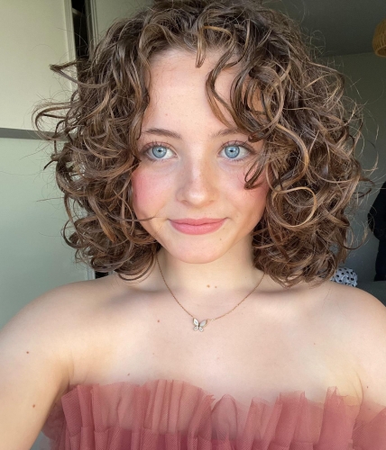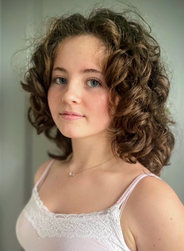Female 5'5'' slim build with blue eyes, medium brown hair